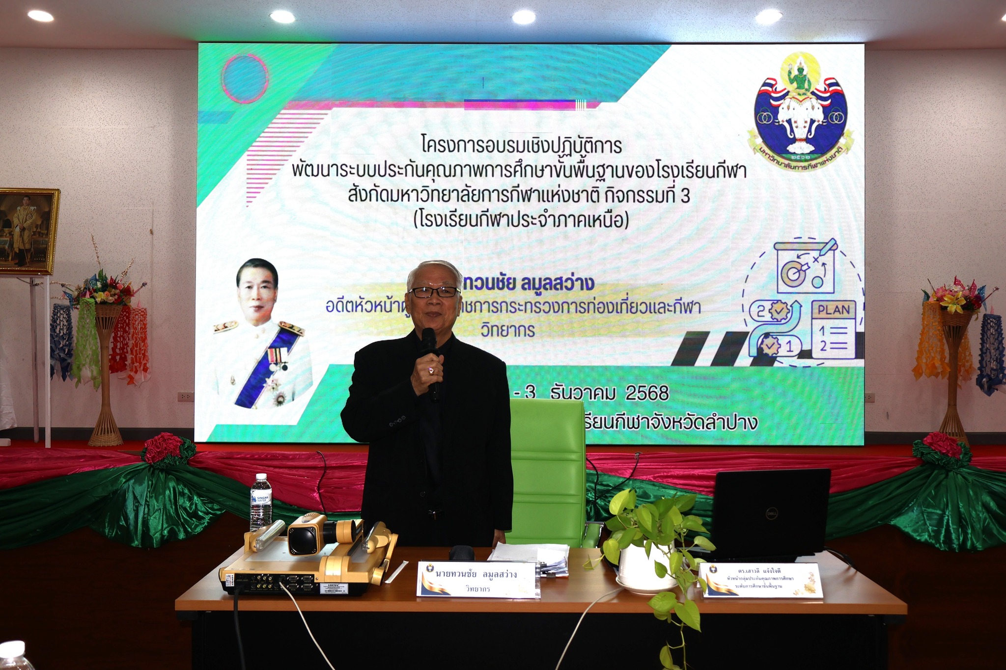 ระหว่างวันที่ 1-3 ธันวาคม 2568 สิบเอกวรเชษฐ์ หมัดอะดั้ม ผู้อำนวยการโรงเรียนกีฬาจังหวัดลำปาง พร้อมด้วย คณะผู้บริหาร นำคณะครู เข้าร่วมโครงการอบรมเชิงปฏิบัติการพัฒนาระบบประกันคุณภาพการศึกษาขั้นพื้นฐานของโรงเรียนกีฬา สังกัดมหาวิทยาลัยการกีฬาแห่งชาติ กิจกรรมที่ 3 (โรงเรียนกีฬาภาคเหนือ) โดยมีผู้ช่วยศาสตราจารย์ ดร.เบญจมาศ ยศเสนา รองอธิการบดีมหาวิทยาลัยการกีฬาแห่งชาติ ฝ่ายวิจัยและประกันคุณภาพการศึกษา เป็นประธานในพิธีเปิด และ นายทวนชัย ลมูลสว่าง อดีตหัวหน้าผู้ตรวจราชการกระทรวงการท่องเที่ยวและกีฬา วิทยากรผู้ทรงคุณวุฒิเป็นผู้ให้ความรู้ ณ ห้องประชุมพลบดี 1 โรงเรียนกีฬาจังหวัดลำปาง