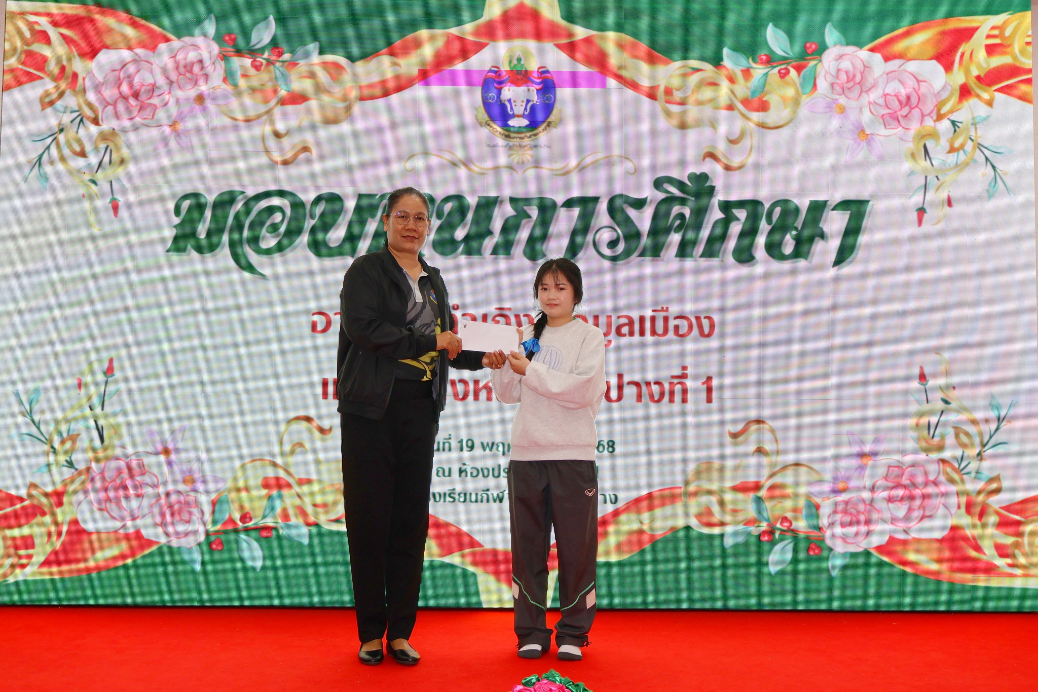 วันที่ 19 พฤศจิกายน 2568 สิบเอกวรเชษฐ์ หมัดอะดั้ม ผู้อำนวยการโรงเรียนกีฬาจังหวัดลำปาง พร้อมด้วยคณะผู้บริหาร เป็นตัวแทนของ อาจารย์ดำเกิง คำมูลเมือง และแขวงทางหลวงลำปางที่ 1 มอบทุนการศึกษาสำหรับนักเรียนขาดแคลนทุนทรัพย์ นักเรียนเรียนดี และนักกีฬาที่มีผลงานเป็นที่ประจักษ์ จำนวน 32 ทุน ณ ห้องประชุมพลบดี 1 โรงเรียนกีฬาจังหวัดลำปาง