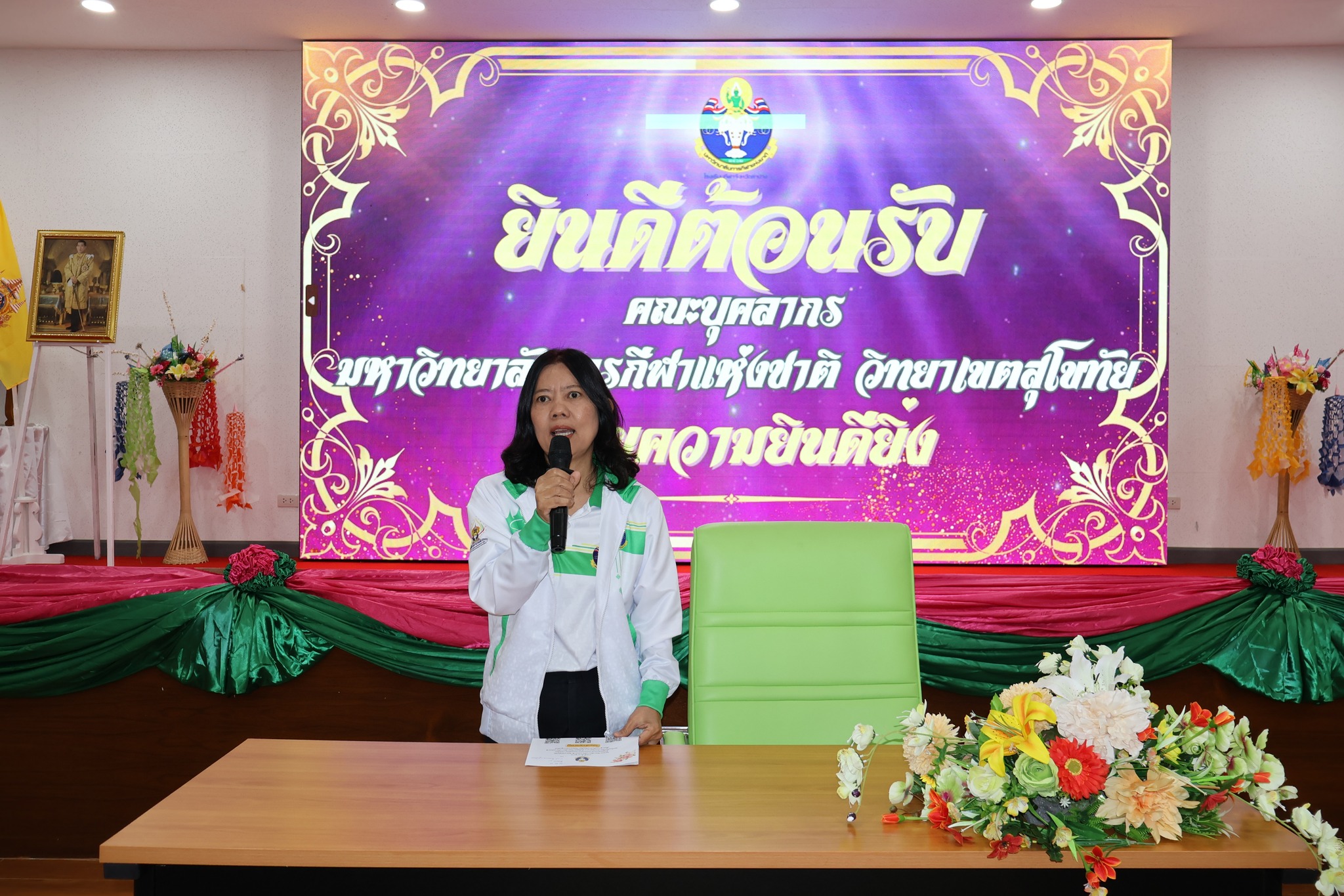 วันที่ 7 ตุลาคม 2568 สิบเอกวรเชษฐ์ หมัดอะดั้ม ผู้อำนวยการโรงเรียนกีฬาจังหวัดลำปาง พร้อมด้วยคณะผู้บริหาร คณะครู และเจ้าหน้าที่ ร้วมให้การอนรับคณะศึกษาดูงานจากมหาวิทยาลัยการกีฬาแห่งชาติ วิทยาเขตสุโขทัย เกี่ยวกับการรับการประเมินเพื่อยกฐานะเป็นโรงเรียนกีฬาในพระบรม ราชูปถัมภ์ของโรงเรียนกีฬาจังหวัดลำปาง ทั้งนี้ โรงเรียนกีฬาจังหวัดลำปาง ได้ร่วมแสดงความยินดีกับ ผู้ช่วยศาสตราจารย์ ดร. สิริพร มีผดุง เนื่องในโอกาสที่ได้รับการแต่งตั้งให้ดำรงตำแหน่ง “รองอธิการบดีมหาวิทยาลัยการกีฬาแห่งชาติ ประจำวิทยาเขตสุโขทัย” ณ ห้องประชุมพลบดี 1 โรงเรียนกีฬาจังหวัดลำปาง