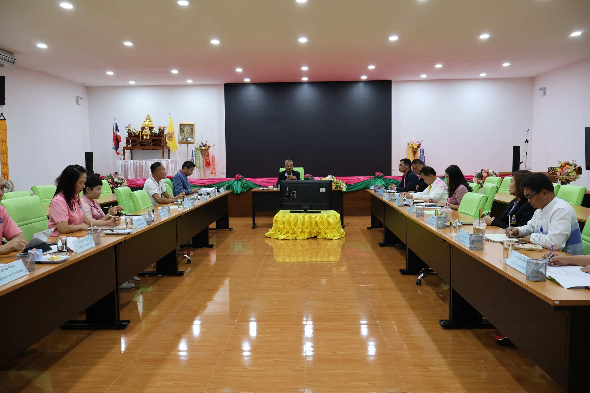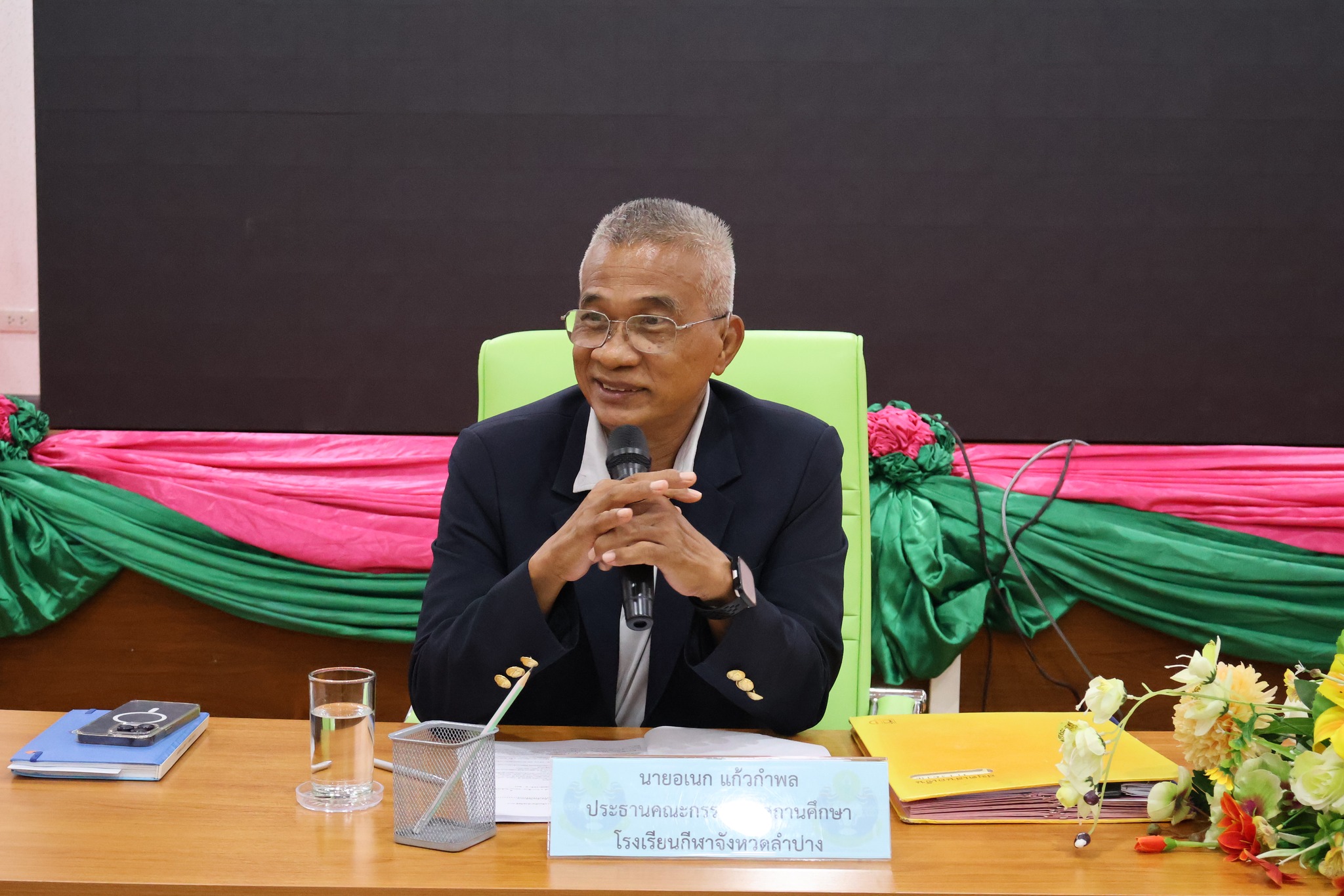 วันที่ 7 ตุลาคม 2568 สิบเอกวรเชษฐ์ หมัดอะดั้ม ผู้อำนวยการโรงเรียนกีฬาจังหวัดลำปาง พร้อมด้วยคณะผู้บริหาร เข้าร่วมประชุมคณะกรรมการสถานศึกษาซึ่งเป็นผู้ทรงคุณวุฒิ โดยมีผู้ทรงคุณวุฒิในสาขาต่างๆ เข้าร่วมประชุม เพื่อรับฟังผลการดำเนินงานในห้วงเวลาที่ผ่านมา และเตรียมการวางแผนในการดำเนินงานของโรงเรียนกีฬาจังหวัดลำปาง โดยมีนายสมพร วะเท ประธานคณะกรรมการสถานศึกษา เป็นประธานในการประชุม ณ ห้องประชุมพลบดี 1 โรงเรียนกีฬาจังหวัดลำปาง